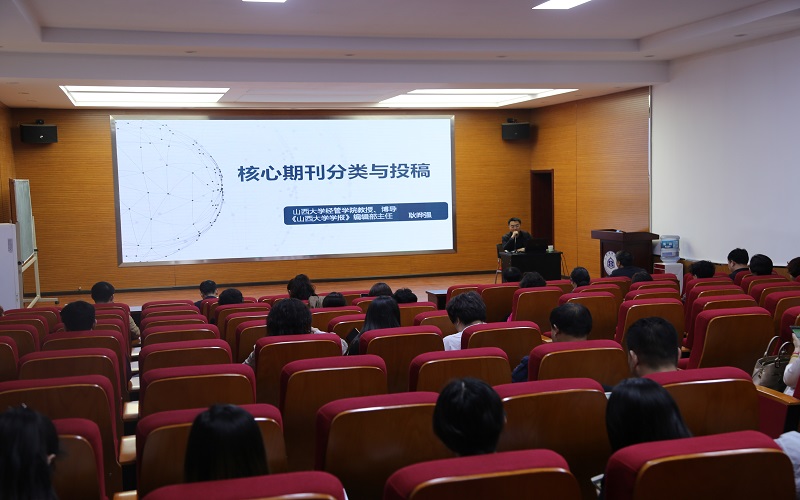 4月2日,应工商管理学院邀请,山西大学经管学院教授、博士生导师、《山西大学学报》编辑部主任耿晔强教授来到我校,在工商学院大讲堂为学院师生作题为“核心期刊分类与投稿”的讲座。讲座由工商管理学院副院长孟华兴主持,院领导吴国英、王胜洲及相关专业的师生聆听。