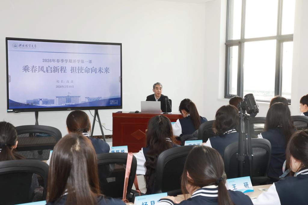 3月10日,校长高波走进联系班级,为学生讲授2026年春季学期“开学第一课”,聚焦全国两会,围绕青年成长与时代使命共话发展。公共管理学院2025级行政管理1班全体学生、辅导员参会。