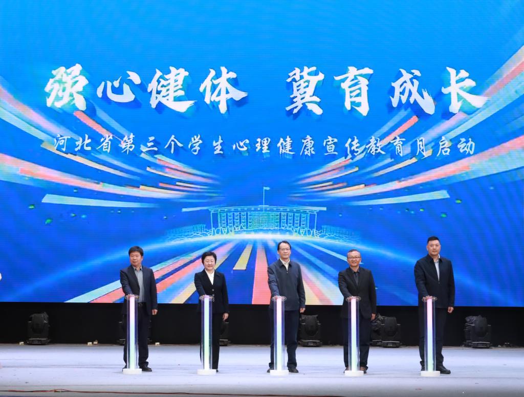 在与会人员见证下,李轶、李晓华等领导共同启动河北省第三个学生心理健康宣传教育月活动。
