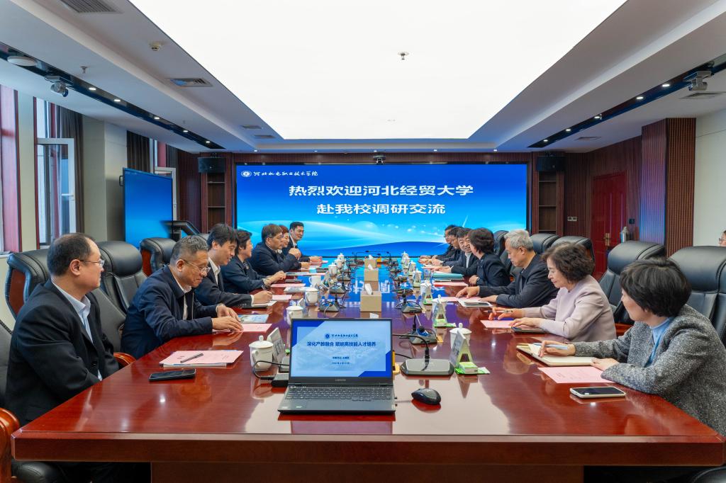 李晓华表示,河北机电职业技术学院坚持工学结合、教学做一体理念,办学条件持续改善,实训设备不断升级,育人水平与创新能力成效显著,学校在应用型人才培养、产教深度融合领域的探索实践,为河北经贸大学推进应用型大学转型提供了宝贵经验。希望今后两校在专业建设、人才培养、教学管理、科研与社会服务等方面加强交流、携手共进,共同提升办学质量,服务经济社会高质量发展。