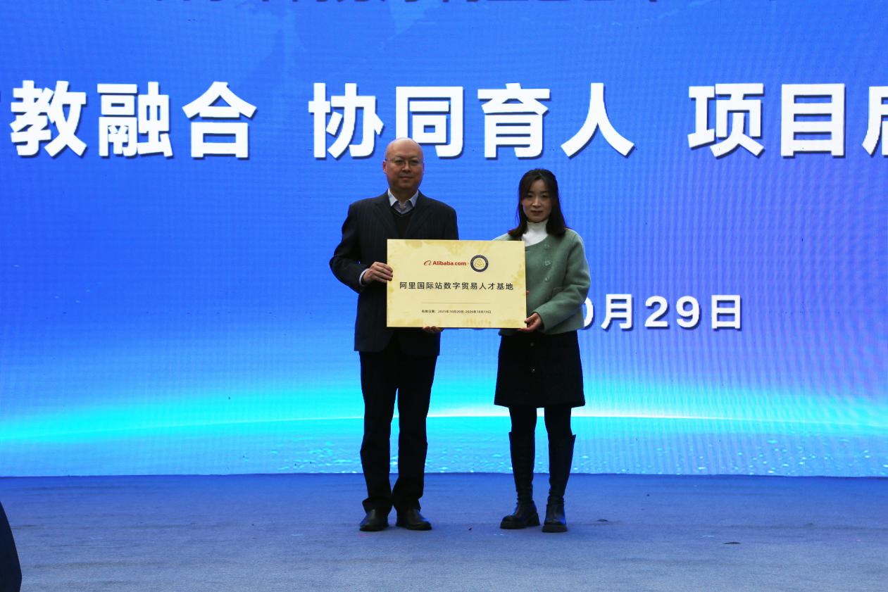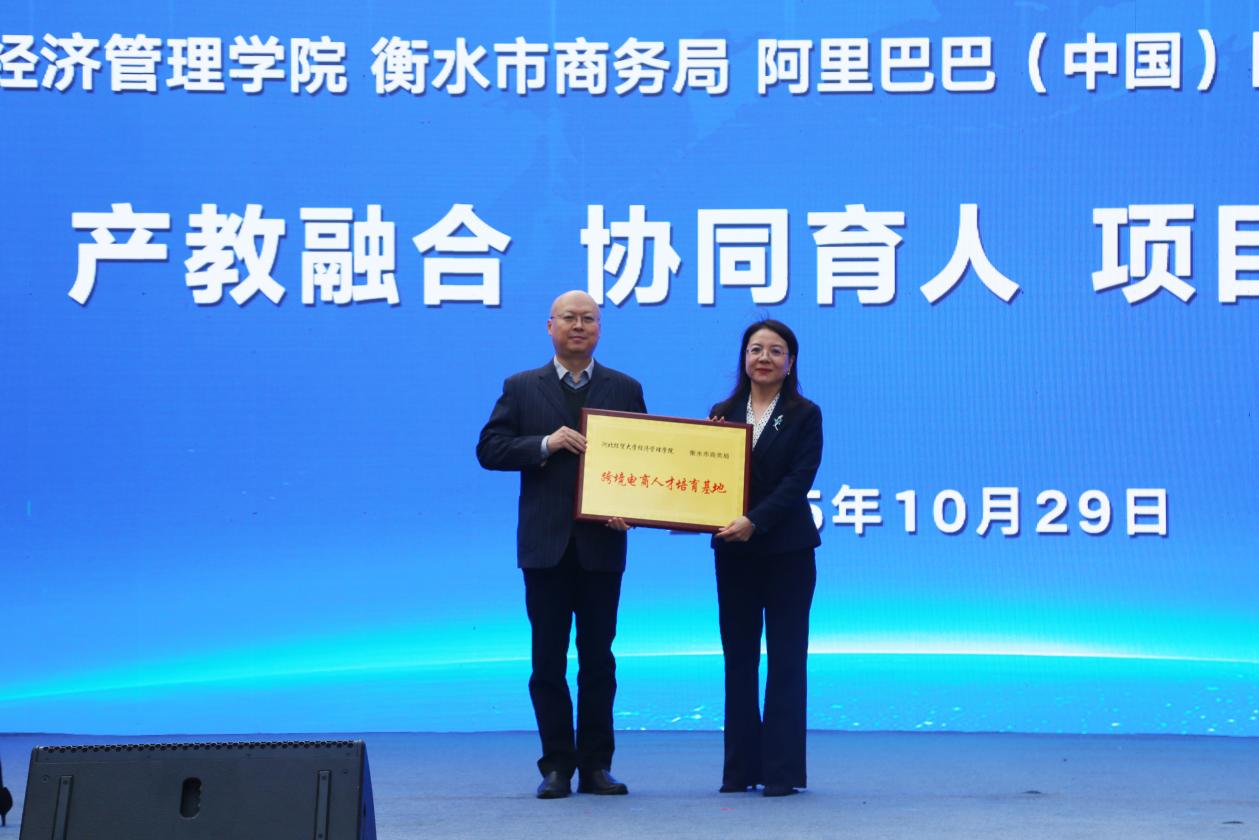 启动仪式上,刘芸为河北经贸大学经济管理学院跨境电商人才培育基地授牌;阿里巴巴国际站与学院签约,并授予“数字贸易人才基地”牌匾。与会嘉宾共同按下启动装置,“产教融合 协同育人”项目正式开启。