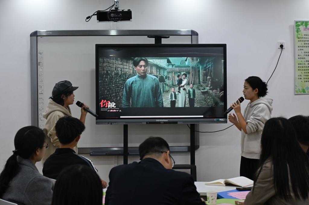 本次班会以“榜样如光 逐梦前行”为主题,围绕“寻迹·英雄之光、致敬·榜样之声、引领·成长之舵”三个篇章展开。班会伊始,师生共同观看了由同学们精心制作的视频《谁是英雄》。视频内容跨越时空,汇聚了峥嵘岁月中的革命先烈,以及当代科研、医学、教育、体育、基层工作者与平凡岗位的70余位榜样人物的影像资料,构筑了一部波澜壮阔的英雄谱系。在随后的分享环节,同学们踊跃发言,讲述心中榜样的感人事迹及其对自身成长的启迪。三位学生代表还为《觉醒年代》经典片段现场配音,深情演绎革命先烈的豪情与信念,将现场氛围推向高潮。活动在同学们倾情演唱励志歌曲中落下帷幕,真挚情感涌动全场,引人深思。