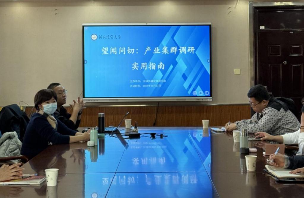 2025年10月27日下午15:00,河北经贸大学区域协调发展研究院于第二行政办公楼研究生学院会议室举办产业集群调研专题讲座。本次讲座特邀学校工商管理学院李建州教授担任主讲人,旨在进一步推进学校“一团队一县域”服务工作,提升团队在县域产业集群调研中的专业能力与实践水平,为后续服务县域经济发展筑牢能力基础。