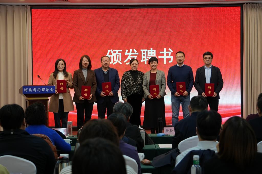 2025年12月7日,由河北省伦理学会主办,我校智库河北经贸大学伦理与社会治理研究中心、河北省道德文化与社会发展研究中心、社会治理德治与法治河北省协同创新中心以及全国高校思政课名师工作室(河北经贸大学)、河北经贸大学马克思主义学院承办的学习贯彻落实党的二十届四中全会精神研讨会暨河北省伦理学会换届大会在石家庄隆重召开。期间召开了河北省伦理学会第六届理事会,来自全省各高校、科研院所的70余名理事齐聚一堂,共同总结学会发展成果,擘画新时代发展蓝图。
